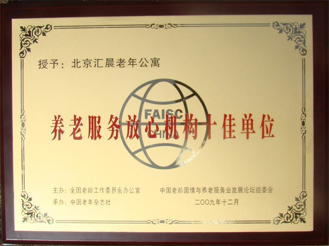 养老服务放心机构十佳单位