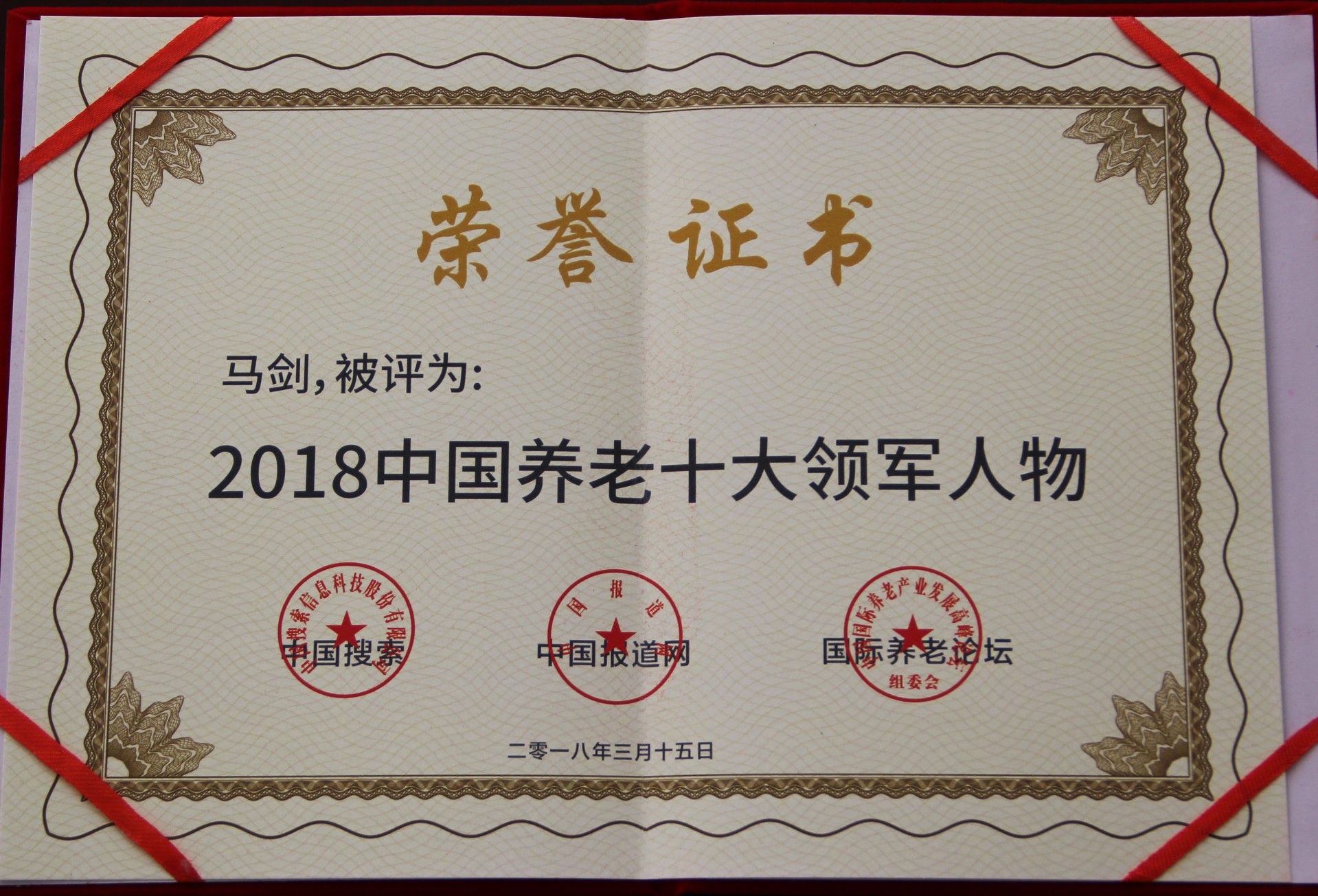 2018中国养老十大领军人物 马剑副总经理