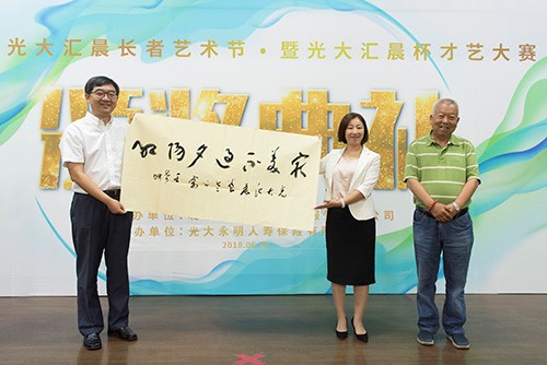 光大永明人寿保险有限公司北京分公司总经理张萌上台致辞并赠送墨宝