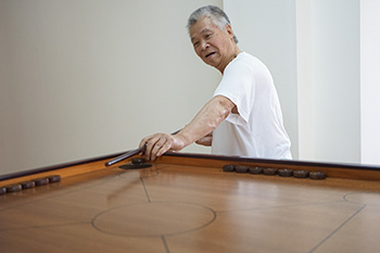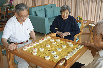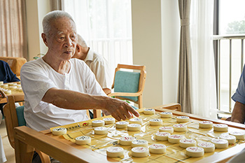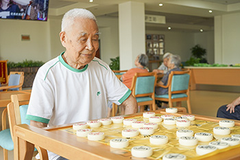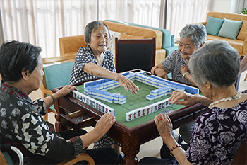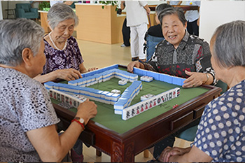 “麻将”也被长者们戏称为“健脑关节操”,是长者们锻炼脑力、上肢关节的娱乐项目。比赛采用积分制,使用扑克牌做筹码,盘数不定,比赛时长1小时,最后累计筹码最多的长者胜。