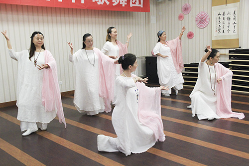伴随着《开幕音乐》,主持人宣布此次活动正式开始,舞蹈《老两口学毛选》、歌舞《大阪城的姑娘》、女生独唱《孝敬父母》《我和我的祖国》等精彩节目轮番上演 。