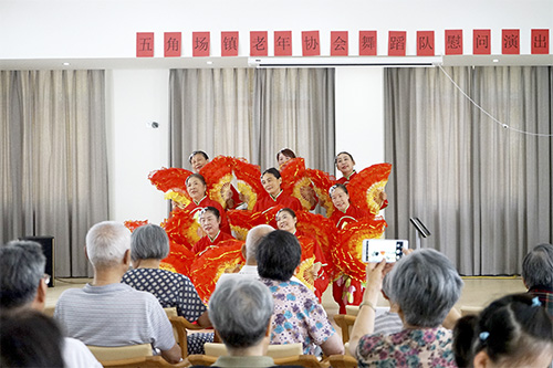 为了丰富长者们的文娱生活,进一步弘扬院内“尊老、敬老、爱老”的服务宗旨,2018年7月26日上海杨浦区bat365正版唯一官网长白老年福利院邀请了五角场镇老年协会舞蹈队在公寓内3号楼二层多功能厅为长者们进行了“舞动青春、歌伴夕阳”的慰问演出,演出人员共计15人,观看演出的长者有50余人。