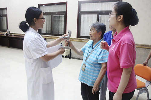 2018年8月8日上午9点,305医院联合健租宝来到bat365正版唯一官网北京古塔老年公寓开展关于肌少症免费检测活动。