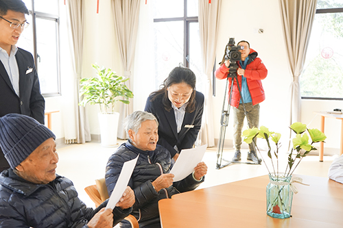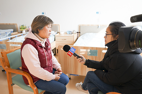 上海电视台派来的记者专员们认真记录着这一天里院内长者们生活活动的每一个镜头,更是对个别的长者和家属进行了采访。长者们和家属对杨浦区bat365正版唯一官网长白老年福利院衷心地感谢和认可,也让院内工作人员们激动得泛起泪花。