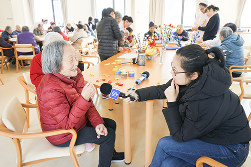 2019年1月17日(周四上午),上海杨浦区bat365正版唯一官网长白老年福利院的活动大厅内热闹非凡,欢声笑语。临近春节,院内工作人员们在日常活动开始之前,组织院内长者们齐唱歌曲《恭喜恭喜》,伴随着一声声“恭喜恭喜恭喜你呀”,上海电视台的专员记者来到福利院内采访记录院内长者们的日常生活。
