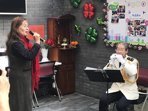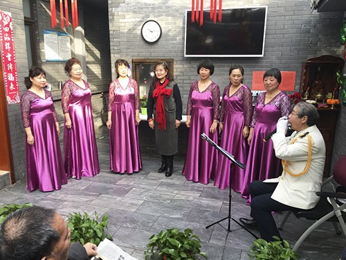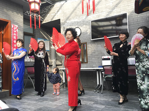 活动以卢团长和主持人为大家带来新春的祝福正式拉开帷幕,紧接着就是长城艺术团为大家带来耳熟能详的经典红歌作为开场。演出中独唱、对唱、小合唱、口琴演奏等,婉转悠扬的歌声、美妙的旋律环绕着四合院,台上声情并茂,台下掌声不断;除了音乐享受之外还有经典豫剧《花木兰----谁说女子不如男》,铿锵有力的唱功仿佛让巾帼英雄再现眼前;最后压轴出场的是旗袍扇子舞《盛世霓裳》,华丽的服饰、曼妙的身姿、举手投足间都充满韵味,展现出一片繁华盛世。