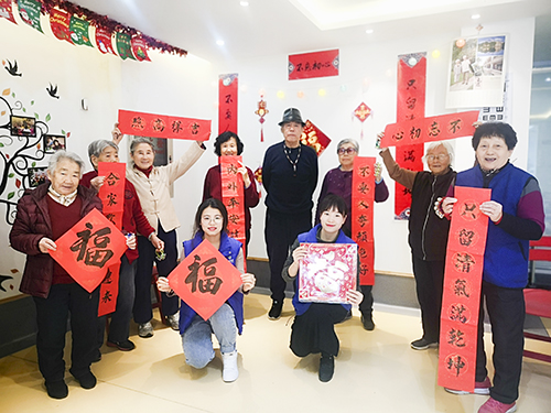 南门仓养老服务驿站将周围社区长者集聚在驿站,不仅有聚会环节,还有社区书法大家宛老师为驿站和长者题字送福,更有驿站社工专员带领大家欢乐舞动。我们在这里欢乐,在这里迎接新年的到来。