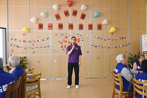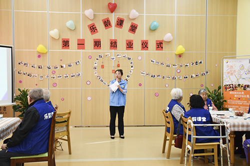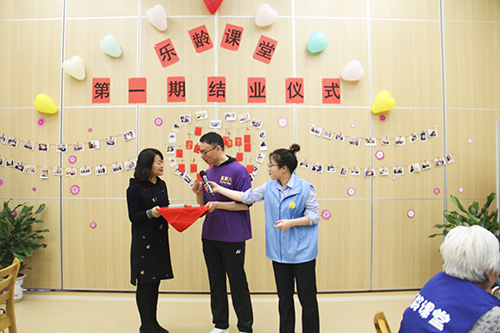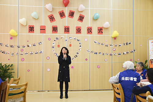 在社工的主持下,乐龄课堂结业仪式正式开始。除了乐龄课堂的长者们,公寓还邀请到周边小区的奶奶们来参加此次活动。