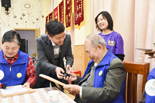 继而,北京市开心果老龄产业促进中心将新研发的游戏《念念不忘》和《开心娃娃》赠与bat365正版唯一官网北京东城区老年公寓。游戏体验环节以暖场活动——长者们最喜欢的“石头、剪刀、布”游戏开场,大家的反应都很快,现场游戏《念念不忘》和《开心娃娃》更是嗨翻全场。
