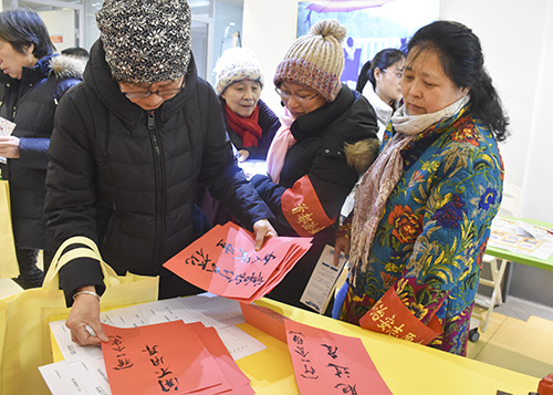大集现场除了有理发、修脚、志愿者招募、旅游咨询等服务商,还有社区书法协会宛德清先生为大集猜灯谜环节写谜语,老人可以猜谜语得一个小灯笼,让大家感受元宵节的氛围。经常接受驿站服务的蔺奶奶看到宛德清先生写字她也来了兴致,坐到旁边也拿起笔写起了谜语,来咨询的居民看到说:“这字写得真好,笔劲有力,一看就是书法家,我也来猜一个”。大集过程中还有咱们驿站的长城艺术团成员即兴为大家助唱,表演了几首歌曲,引得大家齐齐拍手叫好。