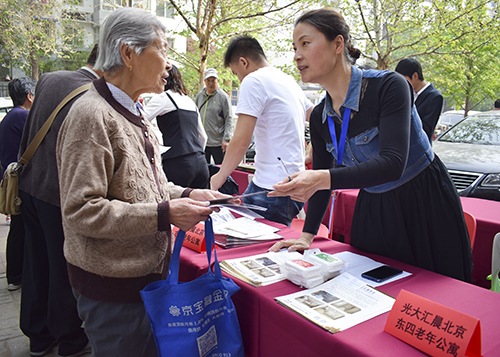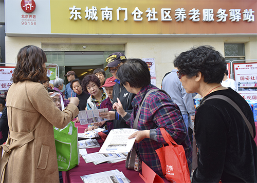 现场,共有北京市旭日福康慢病防控服务中心、北京农商银行、国安社区、阳光家政等23家服务商,为居民提供生活用品及居家养老等各类咨询服务,来自南门仓及周边社区的居民纷纷到现场咨询。