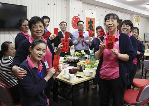 为了和大家一起过除夕,郝院长和总公司赵总在除夕当天也特地过来,来看望我们的员工和长者,给大家送祝福。