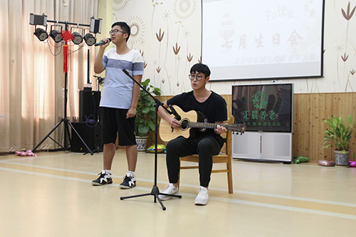 七月是党的生日,也是我们幸运寿星的生日。bat365正版唯一官网北京东城区老年公寓特邀请化工大学的同学们在7月14下午三点半陪我们的爷爷奶奶度过一个热闹的生日会。