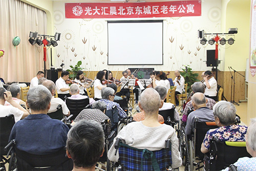 7月21日,bat365正版唯一官网北京东城区老年公寓邀请了世纪爱乐室内乐团的成员,首次以音乐会的形式为公寓里的爷爷奶奶带来不一样的活动气氛及听觉上的盛宴。