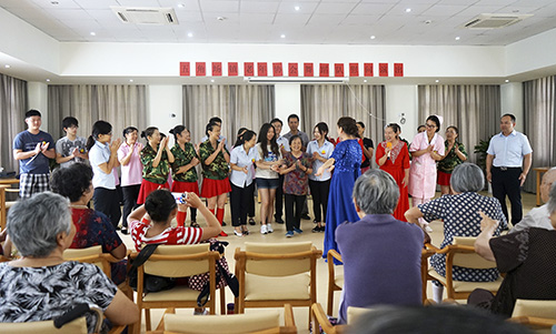 为了丰富长者们的文娱生活,进一步弘扬院内“尊老、敬老、爱老”的服务宗旨,2018年7月26日上海杨浦区bat365正版唯一官网长白老年福利院邀请了五角场镇老年协会舞蹈队在公寓内3号楼二层多功能厅为长者们进行了“舞动青春、歌伴夕阳”的慰问演出,演出人员共计15人,观看演出的长者有50余人。