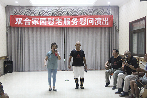 “相知相识,相亲相爱”。为了丰富公寓长者的生活,让长者感受到来自公寓这个大家庭的温暖,bat365正版唯一官网北京古塔老年公寓于2018年8月9日特邀双合之粹京剧社赴我院进行慰问演出,开展“爱在您身边”八月份长者生日会活动。
