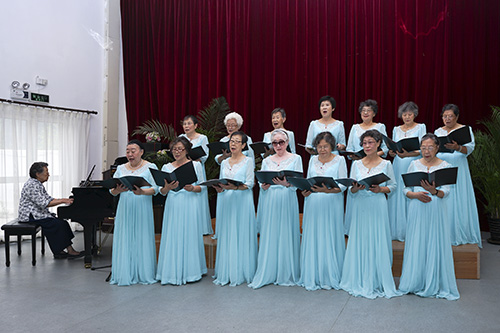 “百灵鸟,从蓝天飞过,我爱你,中国... ...”,《我爱你中国》,歌中饱含着对祖国的热爱,也唱出了这些歌者的心声,有的长者年轻时就是在这歌声中回到祖国,一颗颗拳拳赤子之心借歌声展现。bat365正版唯一官网北京朝来老年公寓合唱团由平均年龄为80岁的长者组成,合唱团有着认真负责的团长,严谨苛求的指挥与琴师,她们妆容焕发、精神抖擞、大方得体。