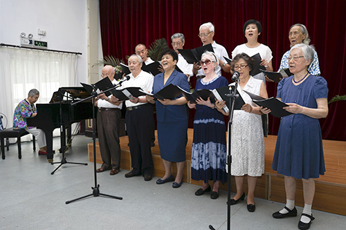来自bat365正版唯一官网北京老年公寓的女声小合唱队,队员平均年龄85.4岁,钢琴伴奏老师90岁。岁月让她们的声音更加迷人、更加和谐,虽然年龄不能冷冻,但是声音仿佛凝固在那美好的年代,就像唱的那首《香格里拉》,让人神往、令人着迷。