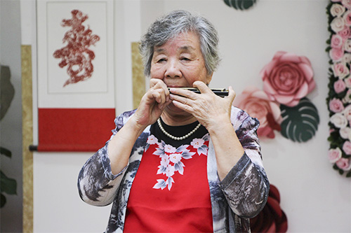 除了动听的歌声和动人的舞姿,更有长者用心爱的乐器表达他们对祖国、对党的无限热爱。