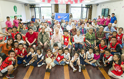 精彩的节目之后,所有的志愿者小朋友和爷爷奶奶一起合影,并给爷爷奶奶送上节日祝福。