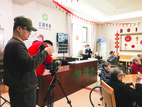王爷爷、杨奶奶接受《长寿时代》的拍摄及访谈。杨奶奶在与节目组谈起自己在bat365正版唯一官网北京东城区老年公寓的养老生活时,除了对养老公寓及医院服务的高度赞扬以外,对于社工的活动特别是对乐龄课堂更是赞不绝口。奶奶说经过几周的学习能明显感觉到大脑的思考能力明显要比以前更清楚了,每天看杂志和报纸也不费力,和公寓的老人交往更多了。