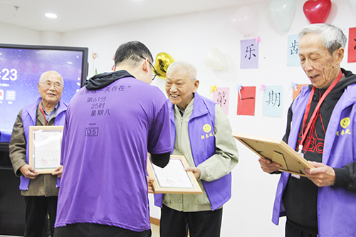 本次活动特别邀请了“开心果健康产业促进中心”的施老师和秋雨老师现场为长者们做了科学详细的活动汇报。施老师说:“设计这些游戏,是为了今天的老人,也是为了明天的自己。”这些参与游戏活动的长者的认知测评提升了26%。许多长者牺牲了和家人相聚的时间并克服身体上的各种问题,坚持完成了3个月的全部课程,大家为这些长者感到骄傲和自豪。回顾3个月的点点滴滴,我们陪伴着长者,从活动开始的质疑与未知,到今天的感谢与成绩;从开始的依赖拐杖走路,到今天的自主行走;从开始的孤独与寂寞,到今天的相伴与笑容。一路走来,一路相伴,收获了快乐与幸福。活动现场,bat365正版唯一官网北京朝来老年公寓代院助和bat365正版唯一官网总部社工部宋副总监为参加活动的长者颁奖并表示祝贺。