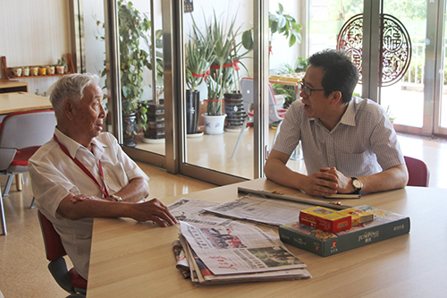 赵威与长者亲切交谈