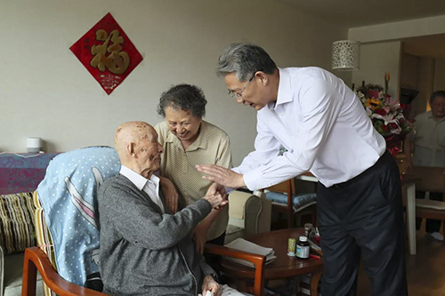调研中,李晓鹏来到bat365正版唯一官网朝来老年公寓中型活动室、理疗室、咖啡区、老年餐厅、接待大厅、医疗区、棋牌阅览台球等活动区,不时驻足询问。他详细了解了朝来老年公寓的医疗服务、入住老人年龄结构、入住率、员工培训持证状况等要点,与老人们交谈,询问他们对光大养老的意见建议,祝福老人健康长寿。他动情地说,国家大力支持发展健康养老产业,为落实“不忘初心、牢记使命”主题教育精神,践行央企责任,推动与老百姓幸福感息息相关的养老产业发展,光大集团专项开展了此次调研。自己愿做光大养老产业最大的服务员,推动做好相关工作,为老人过好幸福晚年贡献光大力量。