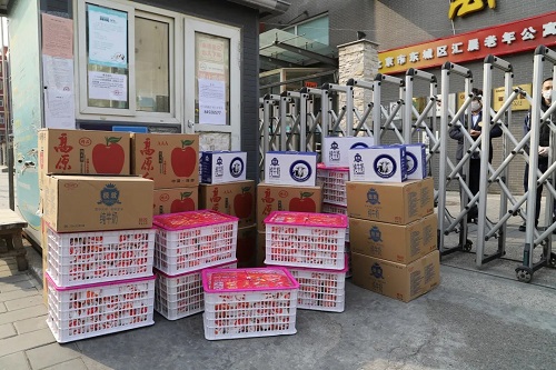 由于养老公寓已实行封闭管理,在严格遵守公寓防疫工作要求的前提下,蔡允革一行在公寓门岗处进行了一场“特殊”的看望慰问。他表示:“疫情发生以来,一直都很惦记大家。由于光大养老疫情防控压力较大,各养老机构实行封闭化管理,所以前期只能通过视频了解大家的工作生活情况并协调解决存在的困难和问题。今年来到现场看望大家,还是要遵守规定,在公寓外隔着栅栏同大家做一些交流。”