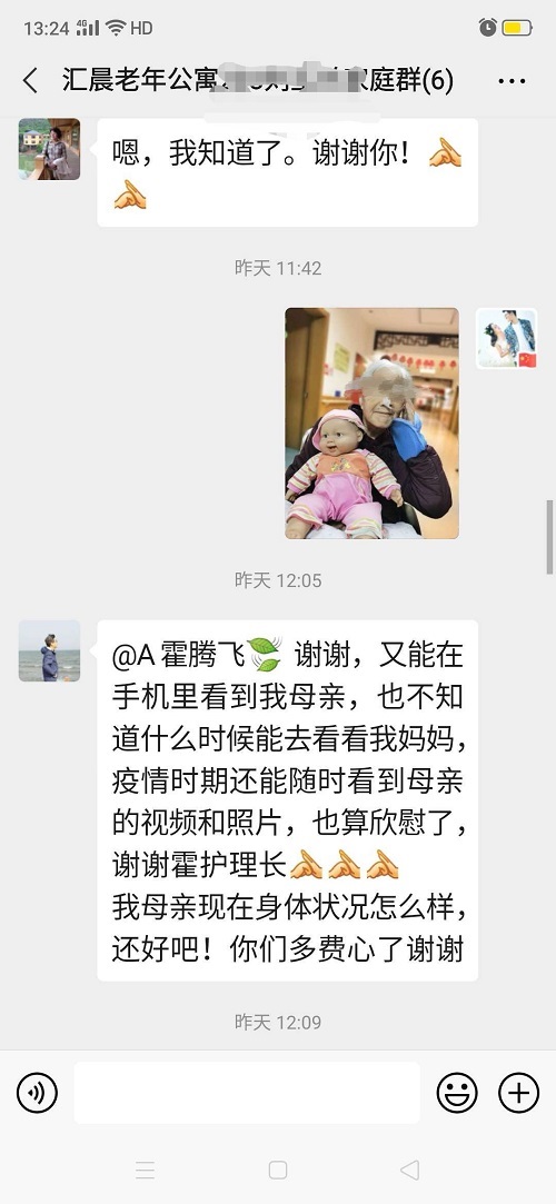 疫情期间封院管理,每天公寓员工都会把长者的身体状况和生活点滴,发送给家属,让他们能够安心。